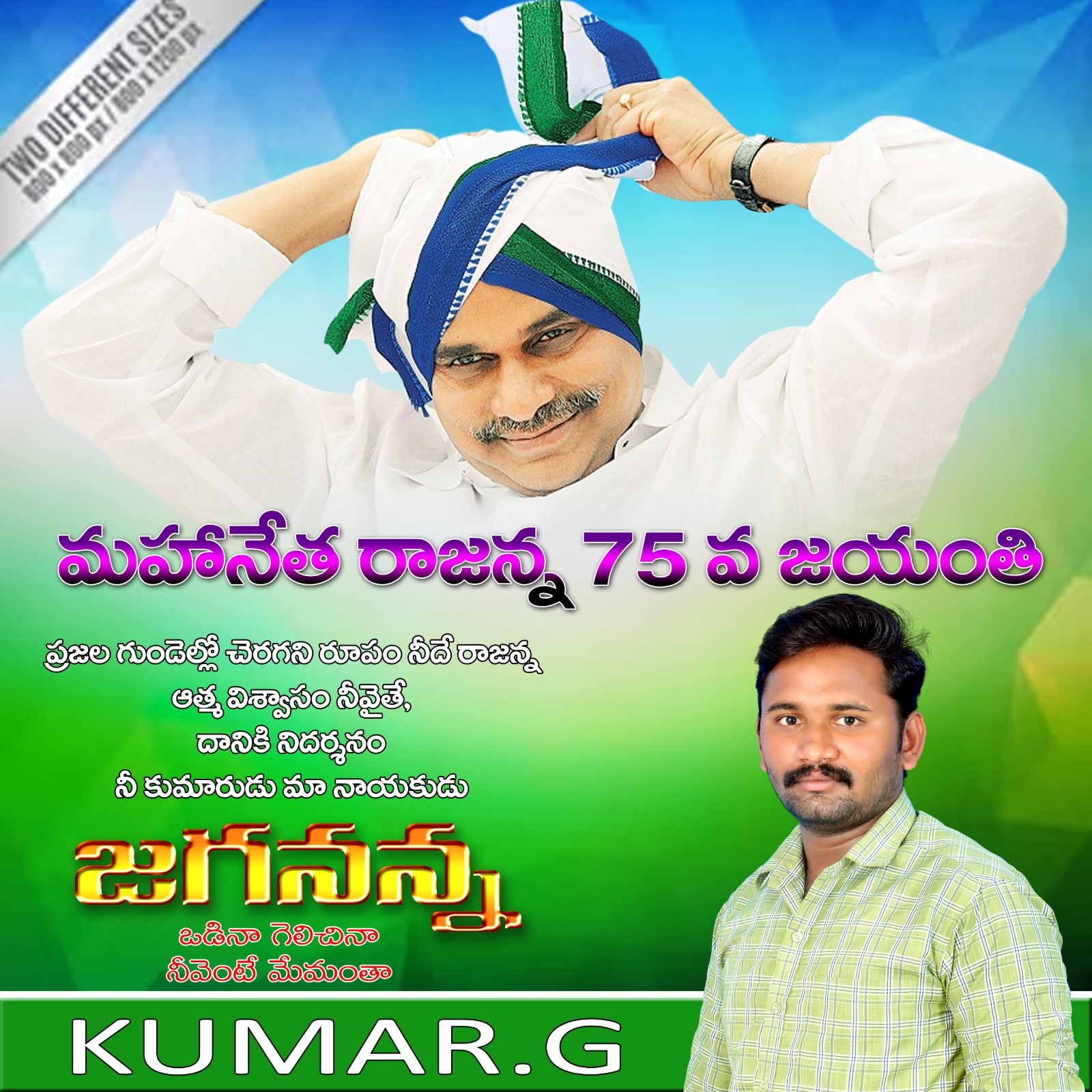 వైఎస్సార్సీపీ నాయకులకు కార్యకర్తలకు అభిమానులకు వైఎస్ఆర్ 75 వ జయంతి శుభాకాంక్షలు