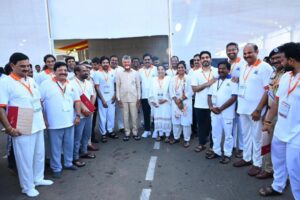 విశాఖ న్యూస్:‘‘యోగా… ఒకే భూమి, ఒకే ఆరోగ్యం’’ అనే థీమ్తో విశాఖపట్నంలో 11వ అంతర్జాతీయ యోగా దినోత్సవాన్ని అత్యంత వైభవంగా నిర్వహించారు. ఈ కార్యక్రమంలో గౌరవ ప్రధాన మంత్రి శ్రీ నరేంద్ర మోదీ గారు, ఆంధ్రప్రదేశ్ గౌరవ ముఖ్యమంత్రి శ్రీ చంద్రబాబు నాయుడు గారు, ఉప ముఖ్యమంత్రి శ్రీ పవన్ కళ్యాణ్ గారు పాల్గొని దేశ మట్టిలోని యోగా గొప్పతనాన్ని ప్రపంచానికి చాటి చెప్పారు.