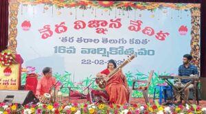 చెన్నై న్యూస్:రోగాలకు చికిత్స రాగాల ద్వారానే సాధ్యమవుతుందని, అందుకే ప్రతి ఒక్కరూ సంగీతాన్ని ఆస్వాదించాలని పద్మభూషణ్ డాక్టర్ కె. ఐ. వరప్రసాద్ రెడ్డి పిలుపునిచ్చారు. వేద విజ్ఞాన వేదిక (తరతరాల తెలుగు కవిత) 16వ వార్షికోత్సవ మహోత్సవం ఆదివారం సాయంత్రం చెన్నైలోని ఆస్కా ప్రాంగణంలోని గోదావరి హాల్లో తెలుగుదనం ఉట్టిపడేలా ఘనంగా నిర్వహించారు.